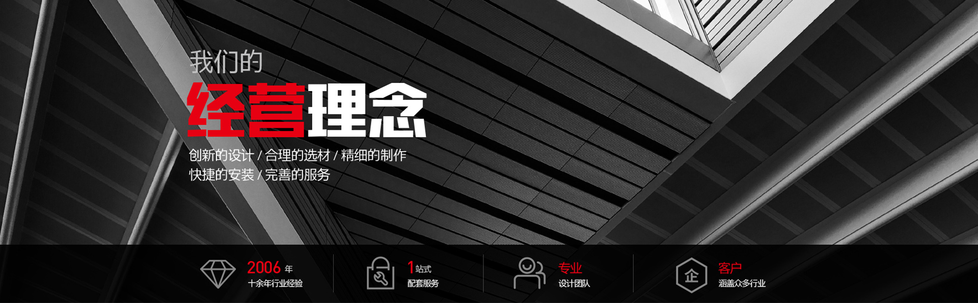 誠信是我們賴以生存的根本。創(chuàng)新的設(shè)計,合理的選材,精細(xì)的制作,快捷的安裝,完善的服務(wù)是我們也就不變的經(jīng)營理念。我們竭誠為您提供中******,個性化,創(chuàng)意性的作品,我們不斷進取,努力今天的同時也在發(fā)展未來,期待與您結(jié)成事業(yè)上的好伙伴,共圖發(fā)展!